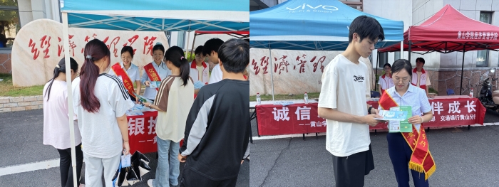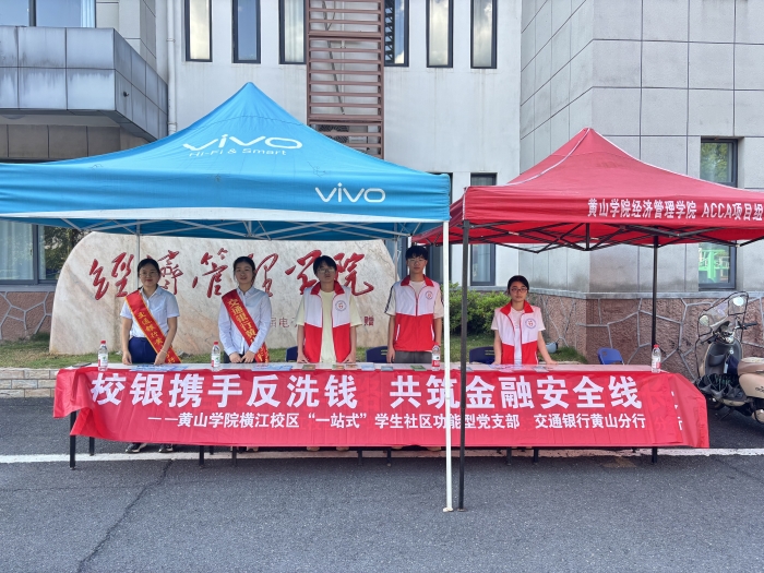 5月29日下午,横江校区“一站式”员工社区功能型党支部联合交通银行黄山分行开展“校银携手反洗钱·共筑金融安全线”反洗钱防诈骗宣传活动。