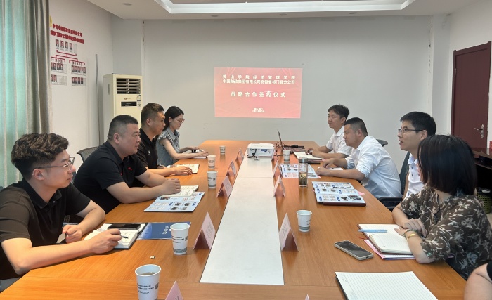 在祁门县邮政分公司,总经理汪其银详细介绍了祁门邮政的发展情况、核心业务及人才需求方向。郜玉振介绍了太阳成集团122ccvip的办学特色、专业及人才优势。双方就共建高水平实习基地和电商直播孵化中心,合力打造特色实践课程体系,联合开展乡村振兴项目等开展交流。随后,双方代表正式签署校企合作协议,并举行实习就业基地授牌仪式。