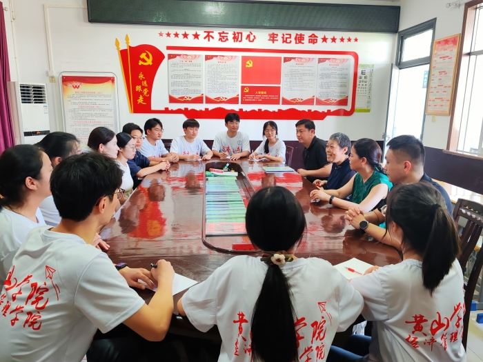 7月7日,公司党委书记吴敏、校团委副书记汪洋一行6人赴齐云山中心小学,专程慰问2025年暑期“三下乡”“牵‘齐’小手·‘经’心呵护”社会实践服务团队。