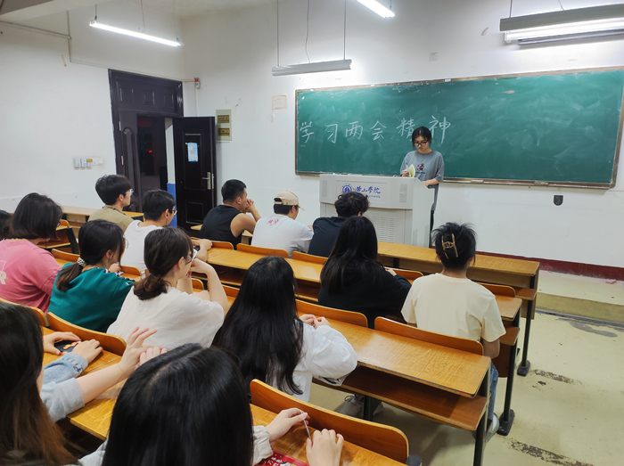 4月27日,20营销团支部在1102教室举办了学习全国“两会”精神主题团日活动,活动由团支部书记于嘉琳主持,团支部所有同学共同参加,辅导员蒋璐璐到场指导。