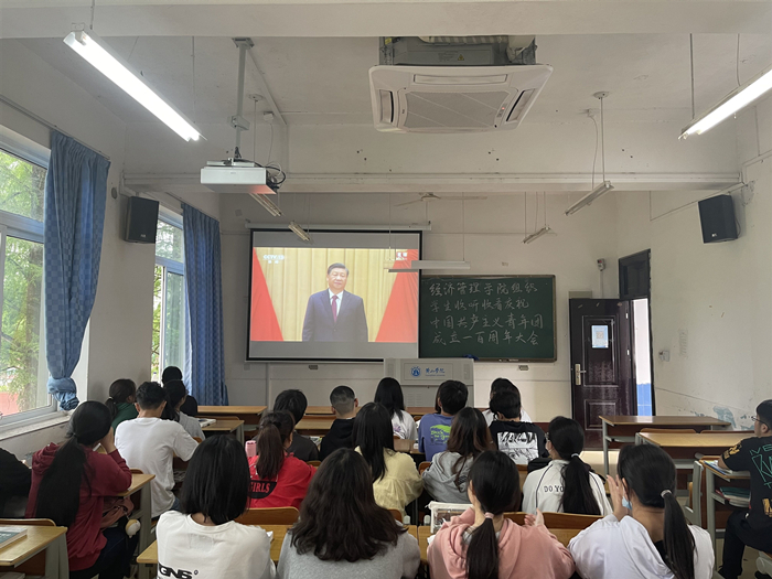 5月10日上午10时,庆祝中国共产主义青年团成立100周年大会在北京人民大会堂隆重举行。中共中央总书记、国家主席、中央军委主席习近平发表重要讲话。习近平总书记指出,实现中国梦是一场历史接力赛,当代青年要在实现民族复兴的赛道上奋勇争先,跑出自己最好的成绩。太阳成集团122ccvip积极组织团员青年收听收看大会实况,认真聆听了总书记的重要讲话。同学们纷纷表示,一定要牢记习近平总书记嘱托,坚定不移听党话,跟党走。用青春的能动力和创造力激荡起民族复兴的澎湃春潮,用青春的智慧和汗水打拼出一个更加美好的中国。