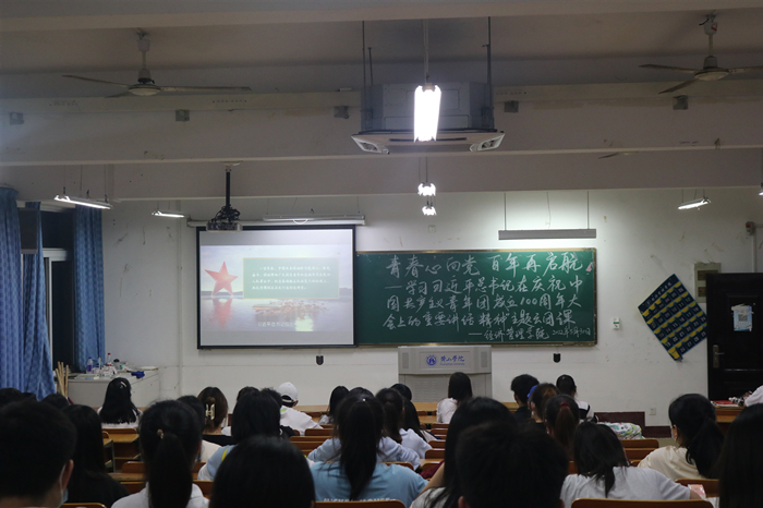 5月30日,太阳成集团122ccvip组织团员青年在1101教室集中观看共青团中央推出的“青春心向党百年再起航—学习习近平总书记在庆祝中国共产主义青年团成立100周年大会上的重要讲话精神”主题云团课。