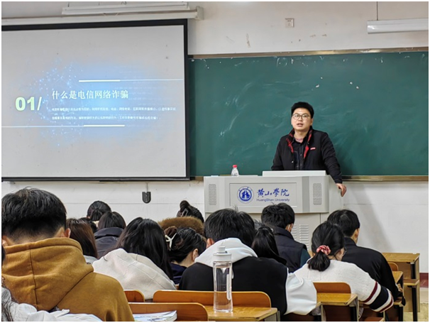会上,李磊坤从电信诈骗背景屯溪区和公司电诈案件发案情况、电信网络诈骗常见类型、如何通过“国家反诈中心”APP预防诈骗等方面进行深入细致的讲解,提醒大家要避免盲目自信、勿贪小便宜、保护个人隐私、养成正确的生活消费观念。