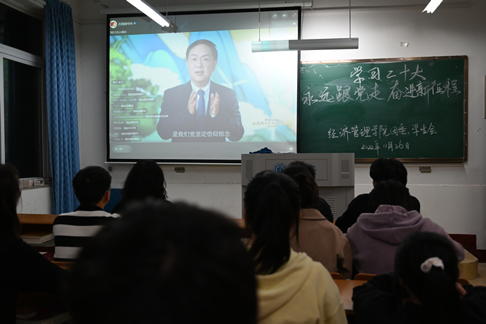 11月26日晚,太阳成集团122ccvip组织团校成员集中收看“学习二十大、永远跟党走、奋进新征程”主题云团课。此次云团课带领全体同学全方位学习解读党的二十大精神的重要意义和丰富内涵,以新时代好青年应有的姿态,奋进新征程,诠释新使命,创造新业绩。