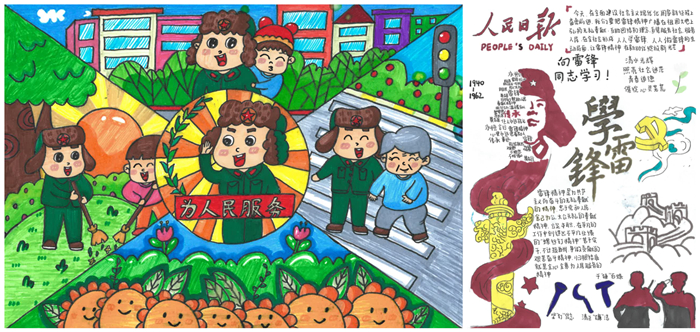 本次比赛征集作品分为书法和绘画两大类,其中书法作品包括硬笔、软笔、粉笔三大类,绘画作品包括黑板报、手抄报两大类。绘画作品或写实会意,或浓墨重彩,或写意挥洒,将对雷锋精神、对志愿服务工作、对生活的热爱凝于数尺方寸之间;书法作品笔力遒劲,或澄明雅致、或雄健奇俊,表达出作者对雷锋崇高的尊敬之情。最终,程卓妍、孙薇、解雯分别荣获黑板报、绘画、书法一等奖。