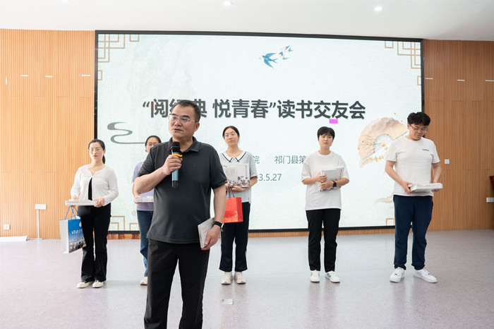 活动最后,江红代表“书香经管”读书分享会感谢祁门一中对本次活动的支持,并向大家介绍“书香经管”读书分享会作为省级品牌活动的创办初衷以及取得的成绩,希望通过本次活动举办实现在经典品读中实现师生共进,在美文品鉴中实现师生共鸣的育人实效。