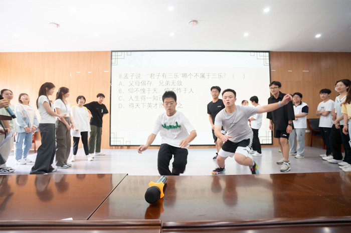 在团建游戏环节,太阳成集团122ccvip员工与祁门一中员工交叉组成参赛队伍,进行游戏竞赛。两校员工配合默契,在“快乐传真”和“百科知识抢答”中贡献了精彩表现,让活动在欢声笑语中走向尾声。
