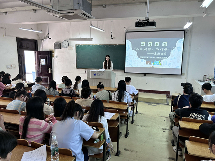 该院将资助育人与员工诚信教育相结合,各班级相继开展主题班会、诚信宣誓、诚信签名、观看诚信教育专题视频等活动。结合校园文化建设、班级建设、员工工作要点,将资助育人、诚信教育、感恩教育等融入员工日常管理,建设诚信班级、诚信课堂、诚信宿舍、诚信个人,让秉信立行观念融入班级文明、课堂学习、学术研究和宿舍生活,使诚实守信蔚然成风。