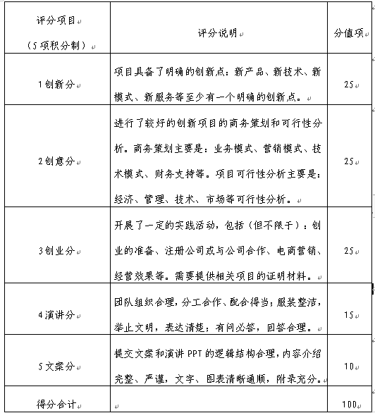评委必须按《评分标准》所列评分项目进行打分,须客观、严谨,不得遗漏,评委全员打分的平均值作为该组最终得分。在排名中,如果出现了有相同分数的团队,评审小组或大组的组长要召集组员商议,解决同分问题。避免重分,组长须加打两位不重复的小数分(例:8.35;9.97),其余组员则不打小数分。