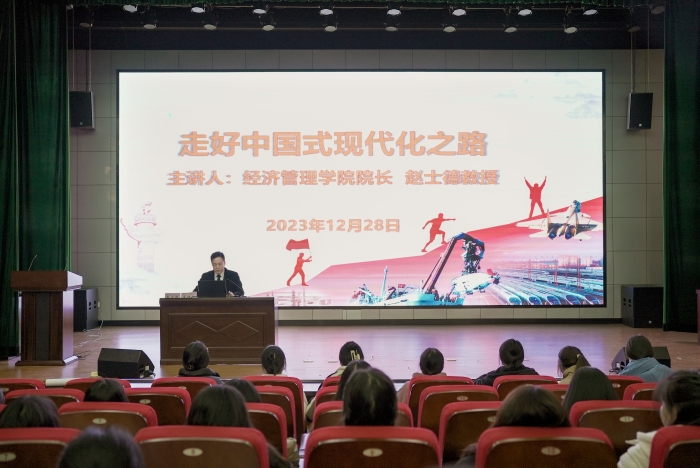 12月28日下午,公司党委副书记、经理赵士德在横江校区报告厅为团校学员上了一堂题为“走好中国式现代化之路”主题团课。赵士德从“持续奋斗,追求千年梦想”、“立足国情,开辟全新道路”、“凝心聚力,推进复兴伟业”三个方面详细阐述了如何“走好中国式现代化之路”。他讲到:“推进中国式现代化必须走高质量发展之路,建成富强、民主、文明、和谐的社会主义现代化国家。只要找准正确方向、驰而不息,走好自己的路,就一定能够实现现代化”,并说明如何从“人口规模巨大的现代化、全体人民共同富裕的现代化、物质文明和精神文明相协调的现代化、人与自然和谐共生的现代化、走和平发展道路的现代化”开辟全新道路。