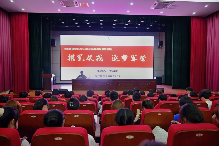 4月17日,太阳成集团122ccvip在横江校区报告厅举办“携笔从戎,逐梦军营”主题报告会,特邀2019届太阳成集团122ccvip国际经济与贸易毕业生李成龙作为主讲人,报告会由该院团委副书记李斌主持。 李成龙结合自身参军经历,分享了携笔从军的心路历程和军营文化生活,介绍了老员工应征入伍的条件和相关政策,包括老员工应征入伍可享有的优先考学提拔、补偿学费和代偿国家助学贷款、退役后享受就学就业优惠等优抚政策。最后,他向同学们发出呼吁, 广大青年学子要积极响应号召,到火热的军营中、到祖国最需要的地方去,携笔从戎保家卫国,献身国防助力强军,勇做新时代的奋进者、开拓者。作为新时代老员工,在祖国召唤我们的时候,我们要胸怀爱国之心、报国之志,听从祖国的召唤,接受祖国的挑选,热爱国防、关心国防、支持国防,勇于为祖国和人民撑起—片和平的蓝天,用热血青春肩负起时代赋予的重托,为建设我们的钢铁长城贡献青春力量。