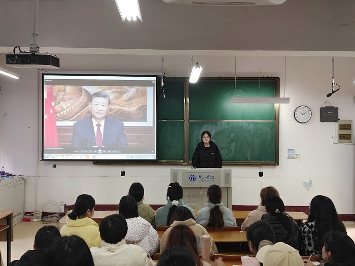 大家首先共同观看了习近平主席2024年新年贺词视频影像,总书记温暖的话语、殷切的期待深深打动了在场的每一位同学,过去一年砥砺初心的不懈奋斗、新一年发展的美好期待,都让大家感受到青年一代身上的责任与担当,激励同学们努力奋斗;随后大家进行交流发言,同学们纷纷表达了对党和国家的感恩之心、忠诚之心,表示要在新的一年学习生活中践行总书记的重要讲话精神,要更加努力学习回馈党和国家,要更加坚定理想信念,努力奋斗,为实现中华民族伟大复兴的中国梦贡献自己的力量!