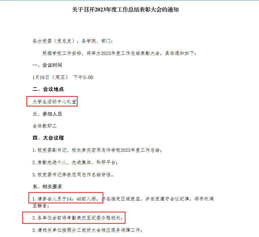 集团2023年度总结表彰大会即将召开,请各位老师根据公司会议通知要求,准时参加会议。