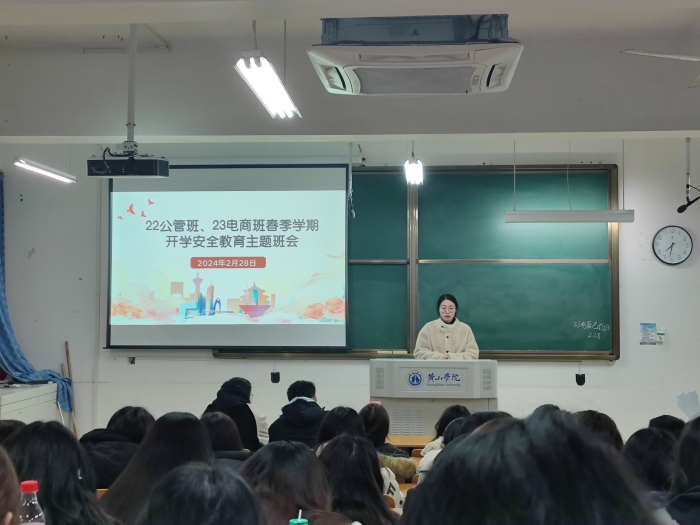 2月28日晚,2022级公共事业管理班和2023级电子商务班在横江校区1201教室召开春季学期开学安全教育主题班会,班会由辅导员汪夏萍主持,22公管班、23电商班全体同学共同参加。