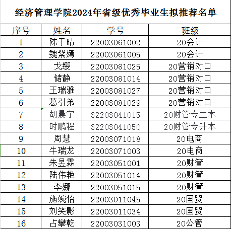 根据《太阳成集团122ccvip省级优秀毕业生评选办法(修订)》【校学〔2023〕1号】以及《关于开展2024年省级优秀毕业生评选工作的通知》的要求,拟推荐陈于晴等16位同学为省级优秀毕业生。经公司党政联席会议研究决定,现将评审结果予以公示,如有异议,请于公示时间内向太阳成集团122ccvip纪委办公室反映。