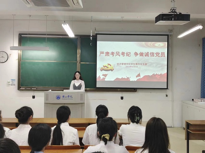 为进一步加强党纪党规教育,强化员工党员的纪律意识,发挥党员在学风考风先锋模范作用。6月5日,员工第四党支部在横江校区1202教室开展“严肃考风考纪,争做诚信党员”诚信考试教育。会议由支部书记汪琼霞主持,全体员工党员参加。