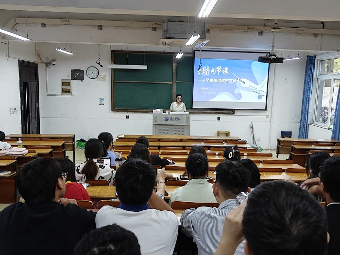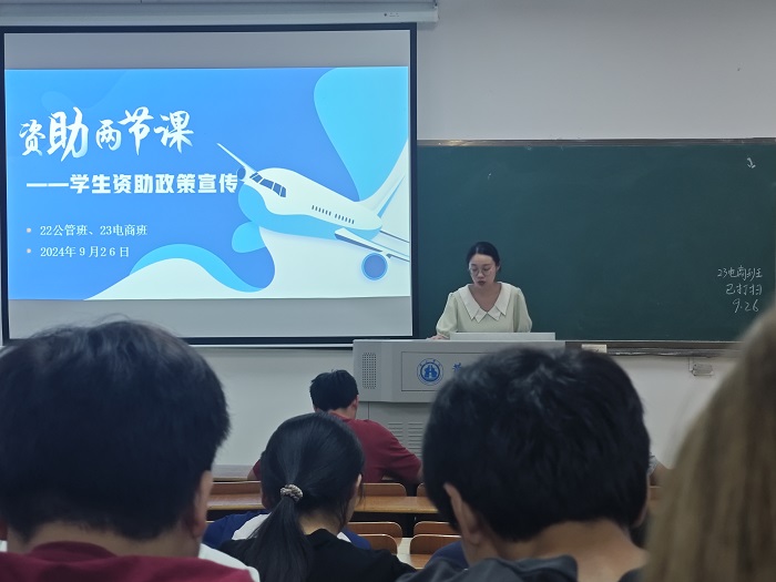 9月26日,21国贸班、21财管班、21会计班、22公管班、23电商班先后在横江校区1102、1101、1324教室开展“资助两节课”——员工资助政策宣传活动,活动由辅导员汪夏萍主持,各班级全体同学共同参加。