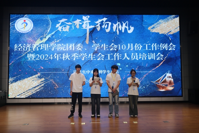 团委(员工)副书记、团委委员及员工会主席团成员依次发言。他们结合自身经历,阐述工作中的点滴,鼓励并要求各位团委成员、员工会干事将员工会宗旨落实到工作中,为员工服务。接着由各部门负责人介绍部门职责及本学期工作规划,并对大一干事的工作予以厚望。全体大一干事表现活跃,踊跃上台发言。