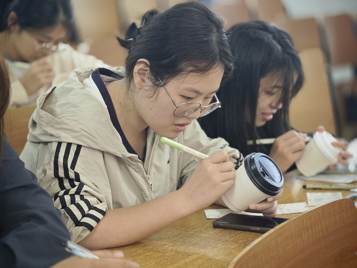 10月14日,线下开展了“廉洁墨韵,清风书韵”主题书画活动,本次活动在横江校区1201教室开展。活动中同学们巧妙地将手中的纸杯变身为一件件创意无限的艺术品。有的纸杯上绘制了莲花盛开的画面,寓意着“出淤泥而不染”的高洁品格;有的则刻画了古代清官的形象,描述着一段段千古佳话。同学们用自己的作品表达出廉洁之风的韵味,不仅进一步弘扬了中华优秀传统文化,也进一步增强了同学们的文化自信感。