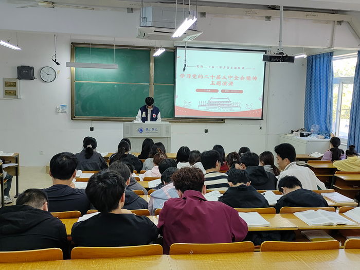 2024年10月21日,22电商班在横江校区1201教室开展“学习贯彻党的二十届三中全会精神”主题演讲活动,同学们围绕党的二十届三中全会精神,结合自己的学习和工作实际,演讲语言流畅、情感真挚,内容丰富且富有感染力,赢得了现场观众的阵阵掌声。每位演讲者都展现出了对全会精神的深刻理解和独到见解,他们不仅分享了自己的学习心得,还结合实际案例,生动地阐述了党的二十届三中全会精神在日常生活中的指导意义。